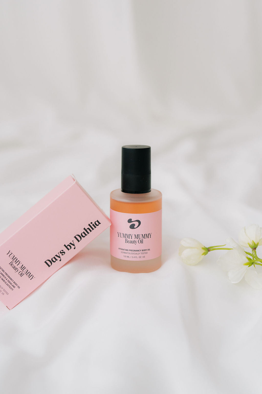 Yummy Mummy Beauty Oil- ravitseva ja miedosti tuoksuva vartaloöljy, joka hellii raskausvatsaa ja ihoa.